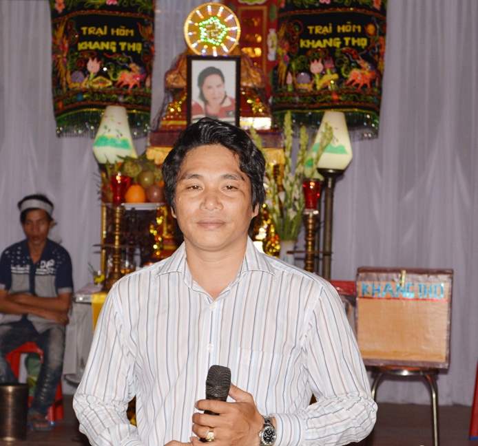 Quán quân "Chuông vàng vọng cổ" Lê Văn Gàn trong thời khắc tiễn đưa nghệ sĩ Vũ Minh Vương.