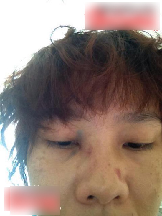 | Trước đó, vào tháng 8/2014, hình ảnh nữ diễn viên phim Thám tử tư với gương mặt bơ phờ và nhiều vết thâm quanh vùng mặt và mũi được tung lên mạng, kèm theo thông tin cô bị chồng đánh. Khi ấy, Dương Yến Ngọc lên tiếng phủ nhận và cho biết, đó là ảnh chụp khi cô bị ngã xe. Thời điểm này cô lại đem hình ảnh đó ra làm bằng chứng cho việc bị chồng thượng cẳng chân, hạ cẳng tay. Ảnh: Nhân vật cung cấp |