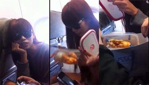 | Siêu mẫu Hà Anh cẩn thận chuẩn bị đồ ăn từ nhà trước mỗi chuyến bay. Khi chuyến bay đã ổn định, cô không ngại mang các món ăn yêu thích ra thưởng thức. |