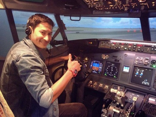 | Huy Khánh từng có cơ hội vào buồng lái mô hình để chụp ảnh làm kỷ niệm. |