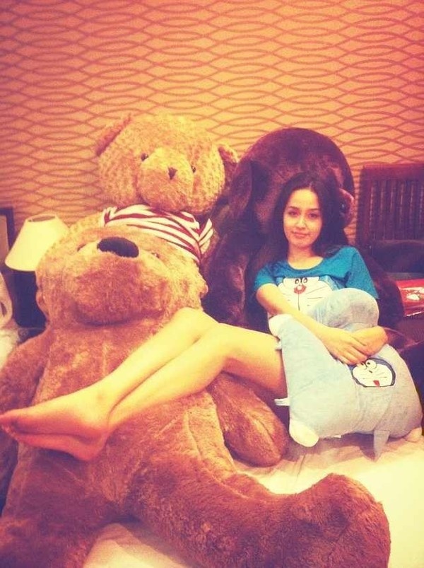 | Hoa hậu Việt Nam 2006 còn rất thích thú bông. |
