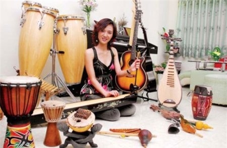 | Thành viên nhóm Năm Dòng Kẻ - Bảo Lan có sở thích đam mê và sưu tập các nhạc cụ khắp mọi nơi. |