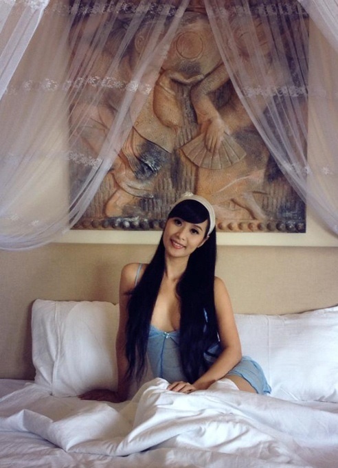 | Kiểu tạo dáng trên giường của Lý Nhã Kỳ. |