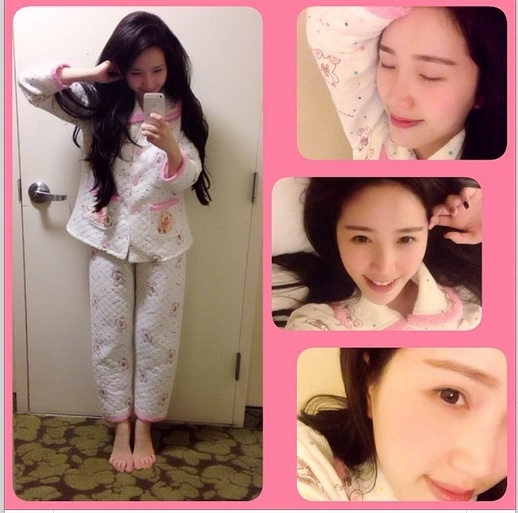 | Tuy mặc đồ ngủ nhưng kiểu tóc của Lê Kiều Như không giống một người đang... buồn ngủ. |