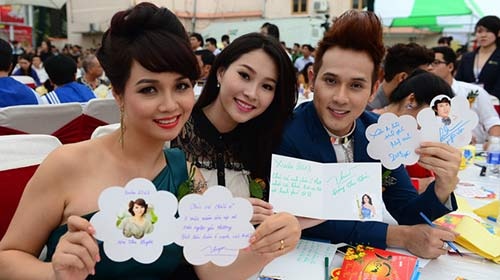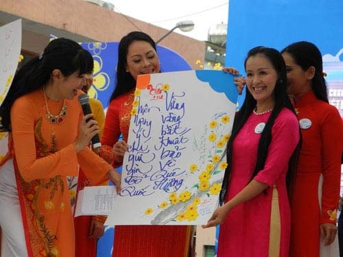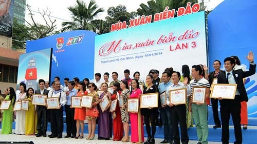 | Trước đó, ngày 3/1, hơn 200 người là các MC, diễn viên, ca sĩ... đã tham gia chương trình Ngày hội Mùa xuân biển đảo 2012. Ngày hội là dịp để kết nối đất liền với đảo xa bằng tình cảm của những người dân đang sống tại TP.HCM dành cho những người đang phải xa gia đình, công tác trên biển đảo dịp xuân về. |