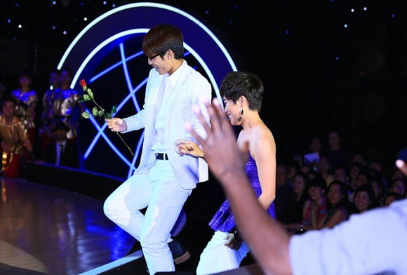 Bất ngờ được thầy giáo cùng ngồi chung ghế giám khảo bày tỏ tình cảm, nữ ca sĩ Fly thoáng chút ngượng ngùng, nhưng cô vẫn hoàn thành tốt vai trò MC của mình.