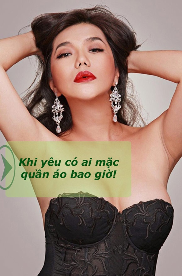 | Nữ ca sĩ chuyển giới Cindy Thái Tài thì biết cách khiến cánh mày râu chóng mặt với phát ngôn: “Khi yêu có ai mặc quần áo bao giờ!”. |