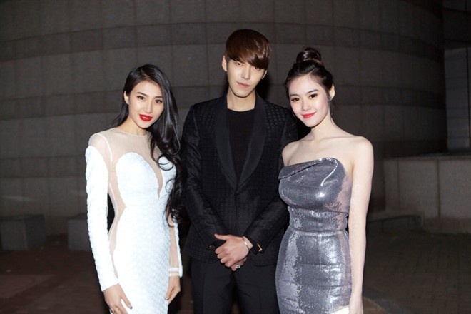 Xuất hiện rạng rỡ ở sự kiện, Ngọc Trinh và dàn người đẹp không quên ghi lại những kỷ niệm đáng nhớ với đồng nghiệp Hàn Quốc, trong đó có Kim Woo Bin. Chàng trai sở hữu chiều cao 1m86 này xuất thân là một người mẫu và nổi tiếng từ sau vai diễn trong bộ phim truyền hình mang tên The Heirs. Tài tử trẻ điển trai của xứ sở kim chi có dịp chụp ảnh cùng Ngọc Trinh và các chân dài Việt như Linh Chi, Thái Hà, Minh Thư…