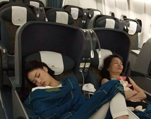 | Lệ Quyên không phải là nhân vật nổi tiếng duy nhất ở Việt Nam vướng phải sự cố trên máy bay. Trước đó, Hoa hậu Kỳ Duyên từng gây xôn xao khi có dáng ngủ không được đẹp mắt trong chuyến bay từ TP HCM ra Hà Nội. |