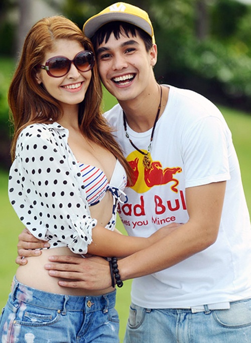 | Tuấn Hưng và bạn gái Thu Hương. |