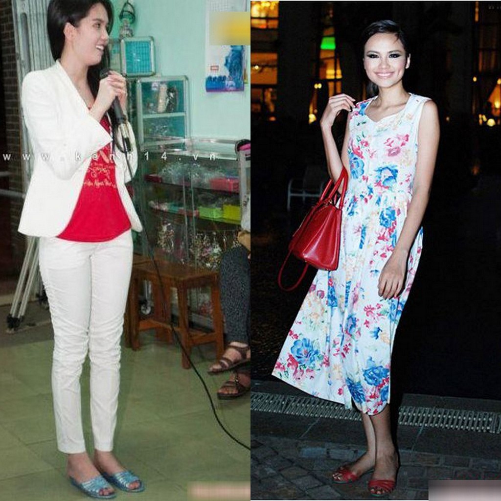 | Ngọc Trinh, Diễm Hương hồn nhiên xuất hiện trước ống kính của các phóng viên với những đôi dép lê nhựa màu xanh, đỏ có thể thấy ở bất cứ khu chợ bình dân nào. Những hình ảnh này đa phần được ghi lại trong các chuyến đi từ thiện hoặc những kỳ nghỉ của người đẹp Việt. Đó là khoảnh khắc họ có thể thoải mái thể hiện sự chân thành, bình dị chứ không cần phô trương hay chưng diện.