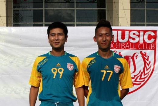 | Tiền vệ Xuân Tú và nhạc sỹ Hồ Hoài Anh trong mầu áo FC Music. Ảnh: FB |