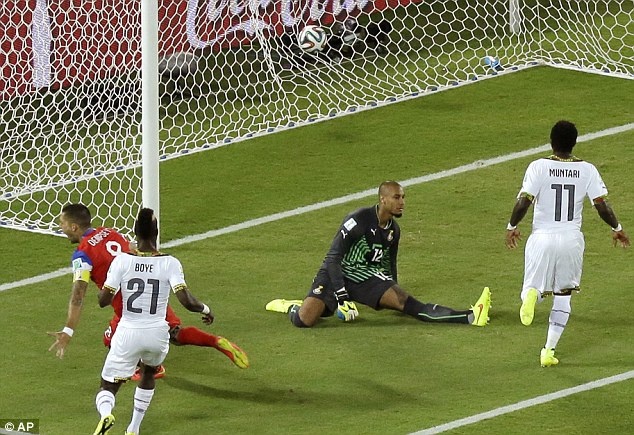 | Anh vượt qua hai cầu thủ bên phía ĐT Ghana và làm tung lưới đối phương bằng một cú sút quyết đoán. |