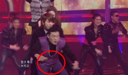 | PSY cũng từng rơi vào tình huống xấu hổ vì chiếc quần rách không đúng chỗ và đúng lúc. |