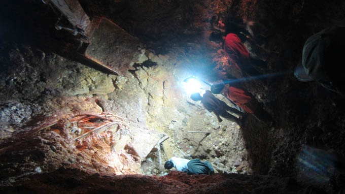 | Vụ sập mỏ đã vùi xe ben và xe máy xúc dưới hố cao lanh. |