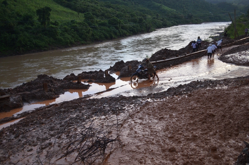 | Ngoài ra, đoạn đường qua bản Huồi Thợ, xã Chiêu Lưu cũng bị sạt lở nghiêm trọng khiến giao thông bị đình trệ. |