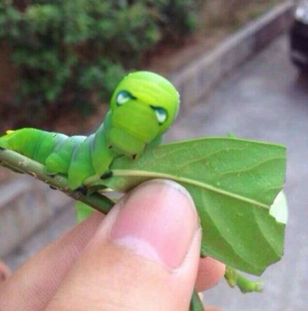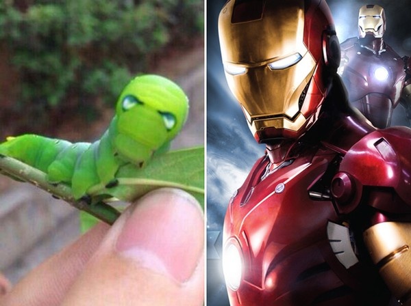 Với chiếc đầu tròn ủng và đôi mắt sáng màu, con sâu bướm này khiến mọi người đều liên tưởng ngay tới tạo hình Người Sắt. Chủ nhân bức ảnh cho biết đã phát hiện con sâu bướm đang đậu trên một nhánh cây nhỏ trên phố.