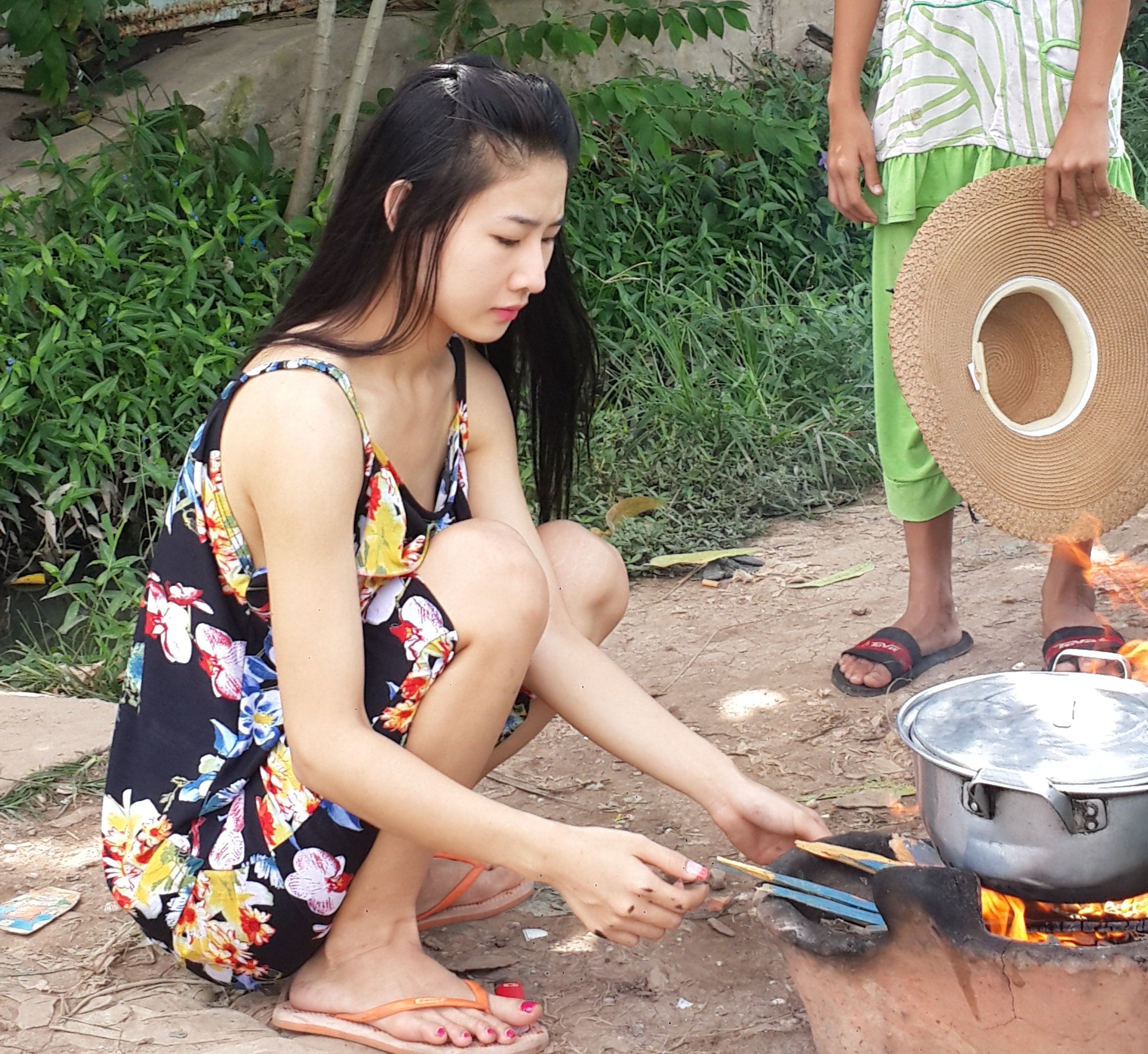 | Vốn quán xuyến công việc nhà từ nhỏ, cô không mấy khó khăn trong việc nhóm bếp. |