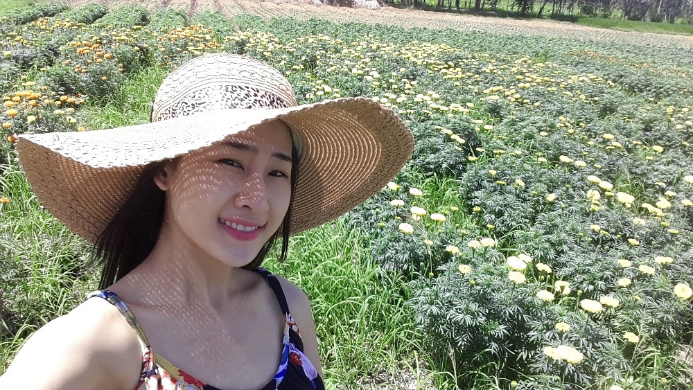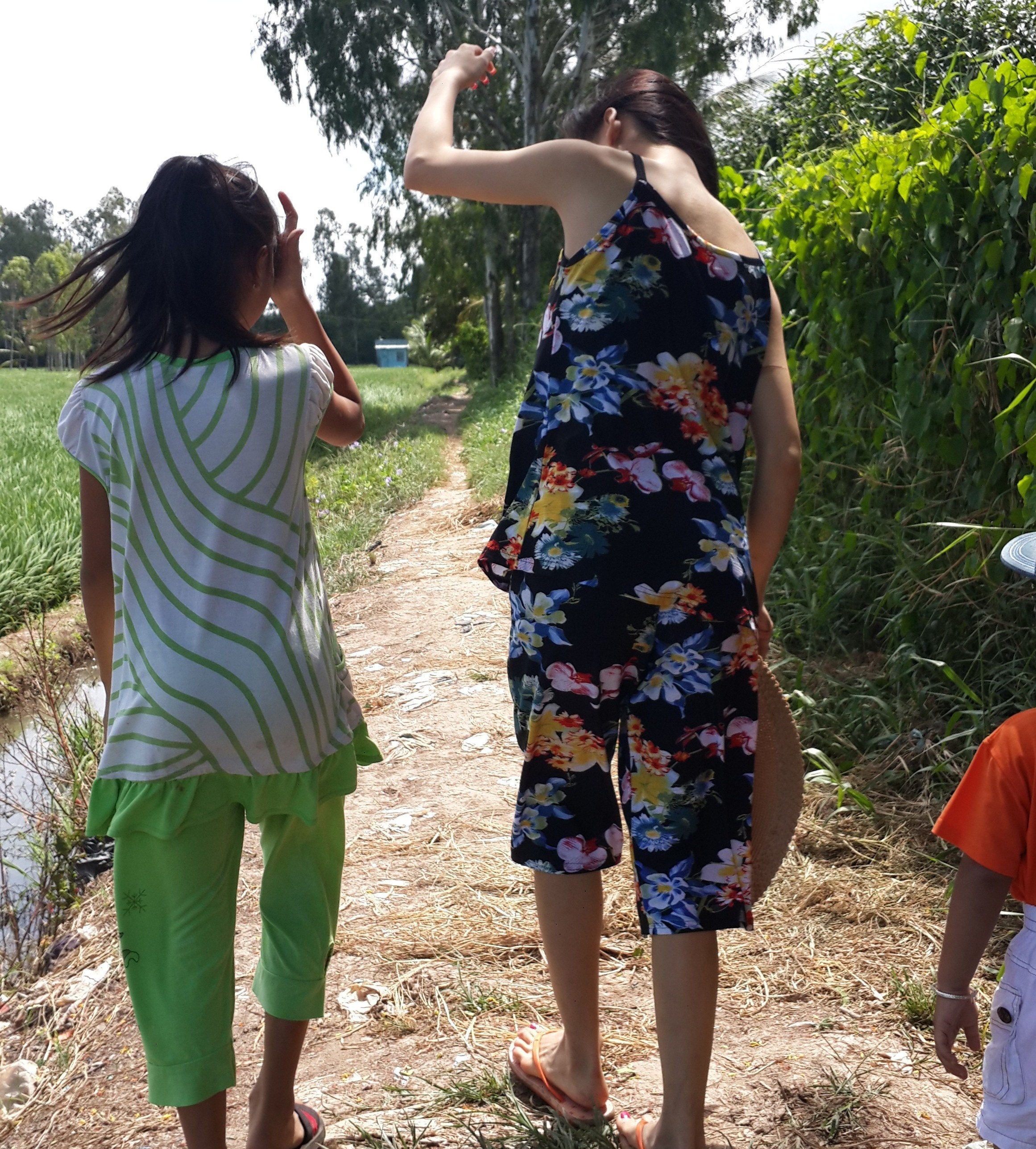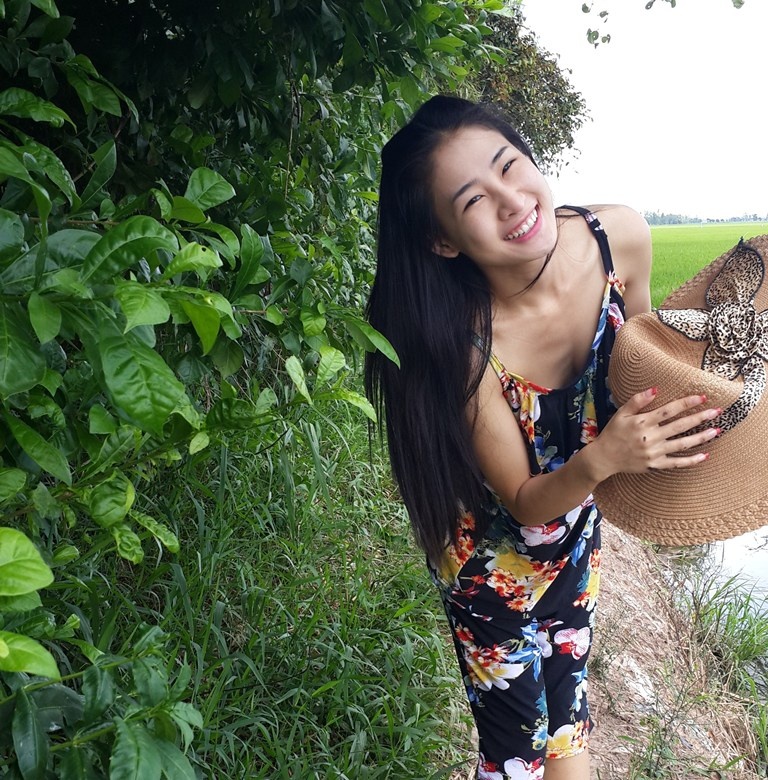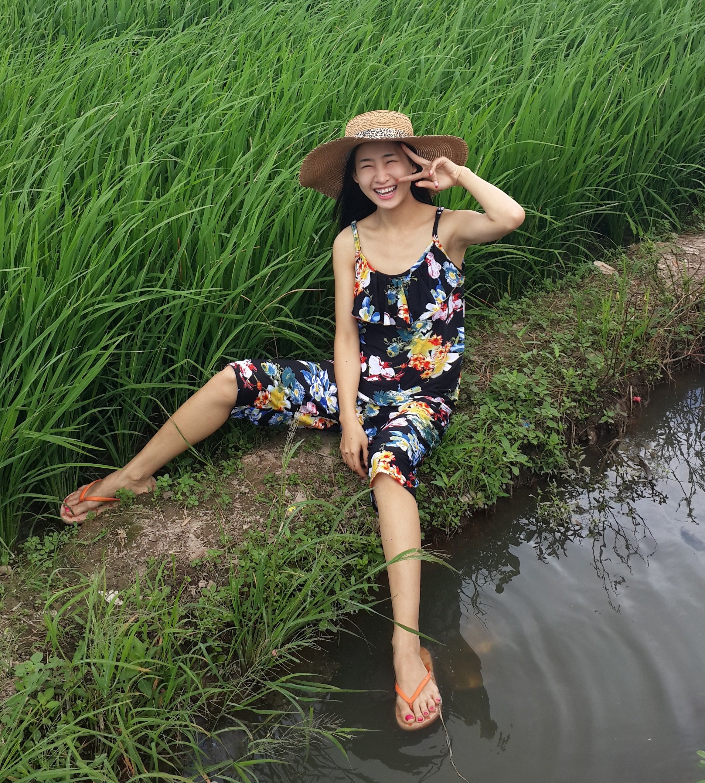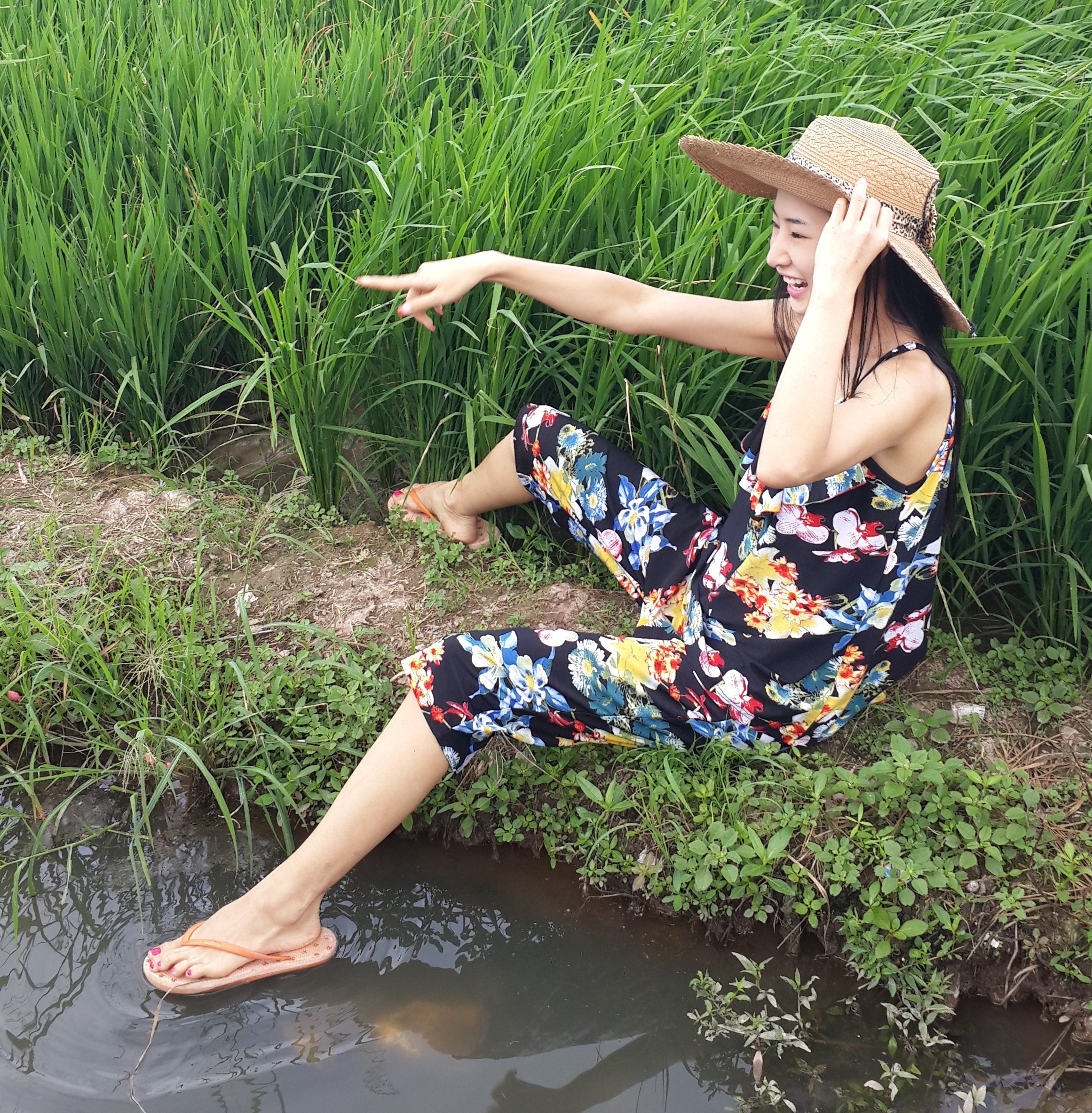 | Cô thích thú khi tạo dáng chụp ảnh giữa đồng ruộng xanh mướt. |