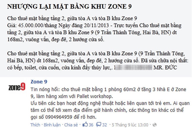 Giá thuê tại Zone 9 thậm chí còn tăng mạnh ngay sau thời điểm xảy ra vụ cháy khiến 6 người chết tại "hợp tác xã" nổi tiếng Hà Thành này. Trung bình, mỗi m2 tại Zone 9 được chuyển nhượng lại cao gấp rưỡi đến gấp 4 lần so với một mặt bằng tương tự tại đường Nguyễn Huy Tự.