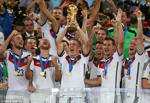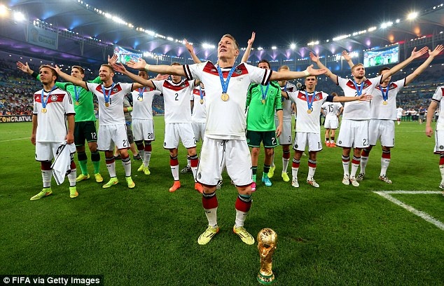 | Schweinsteiger trong khoảnh khắc tuyển Đức lên ngôi vô địch thế giới. |