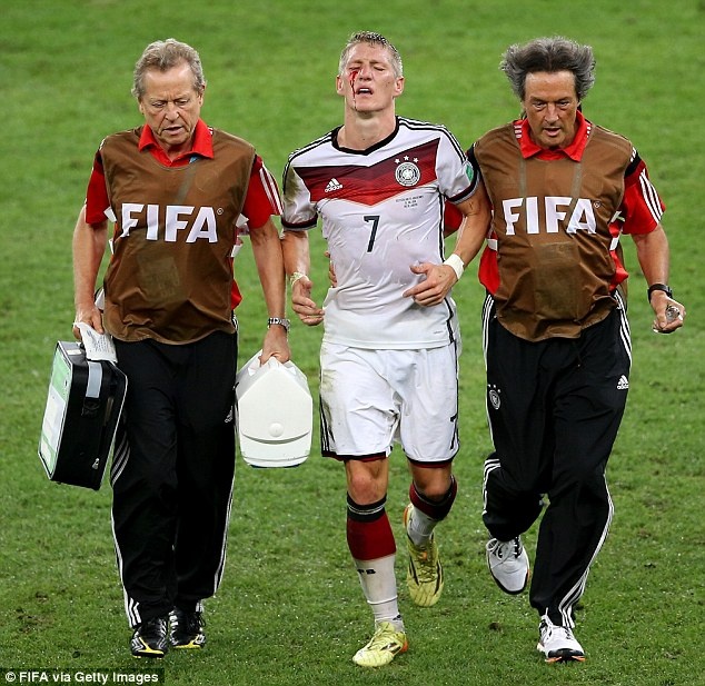 Phút 108 trong trận chung kết World Cup 2014, một pha bóng tiểu xảo của Aguero ở tình huống tranh chấp bóng bổng khiến gương mặt Schweinsteiger đầm đìa máu. Không bỏ cuộc, Schweini nhanh chóng lao vào sân để rồi phải nhận thêm những cú vào bóng của đối phương tưởng chừng khiến anh không thể đứng vững. Nhưng vượt lên tất cả, đôi chân ấy vẫn vững vàng cho đến khi trọng tài Nicola Rizzoli nổi hồi còi kết thúc trận đấu.