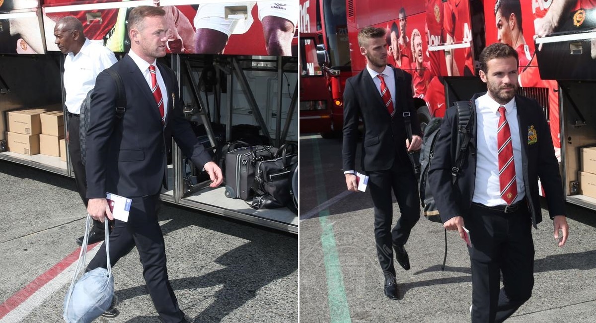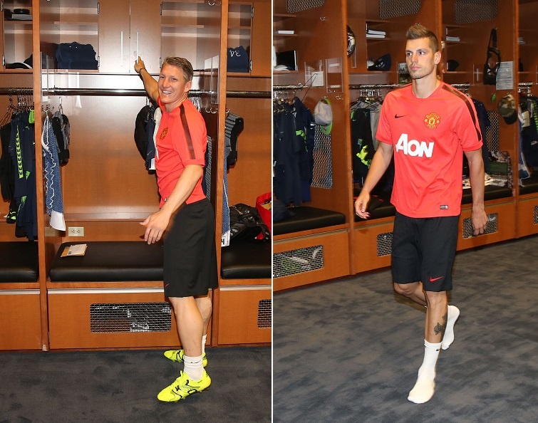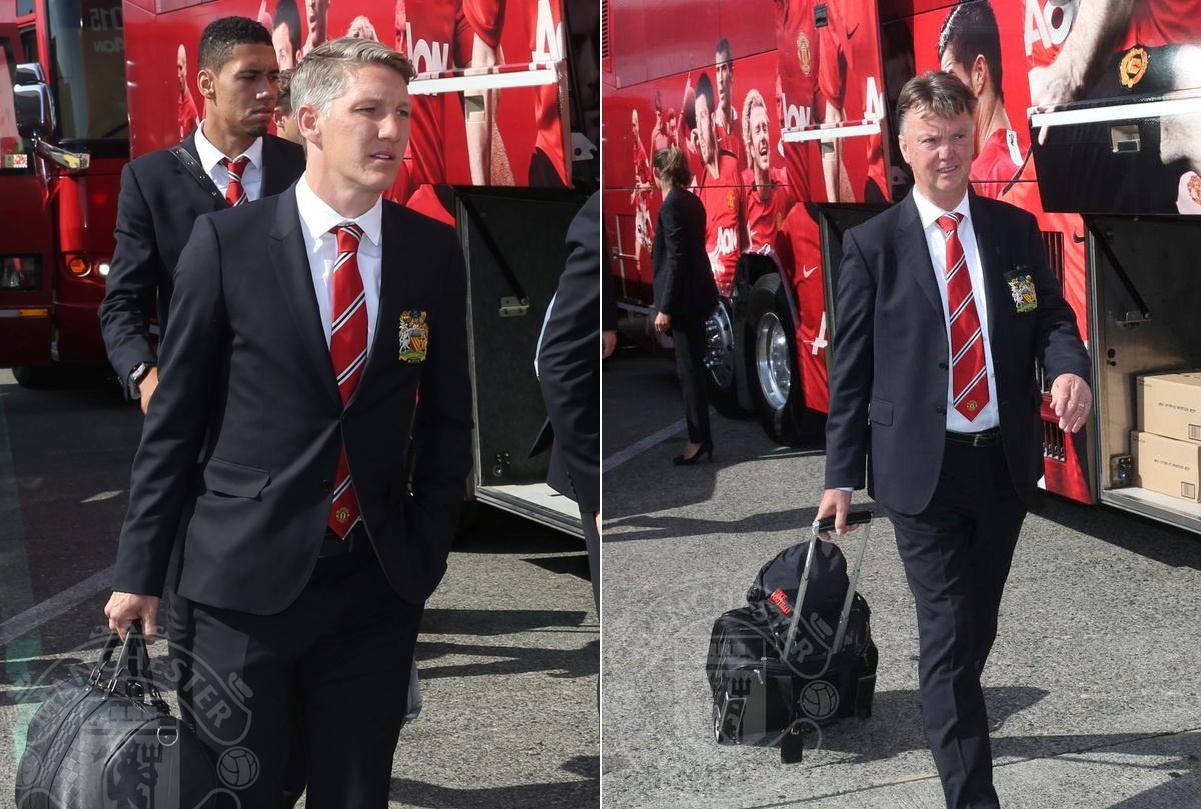 | Sau khi ký hợp đồng với Manchester United, cặp tiền vệ Bastian Schweinsteiger và Morgan Schneiderlin cùng đội bóng mới lên đường sang Mỹ du đấu. Đội quân của HLV Louis Van Gaal có mặt tại xứ sở cờ hoa ngày 13/7. |