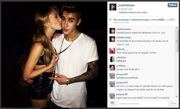 Trước đó hơn 1 tuần, Justin đã khoe hình ảnh hậu trường MV All That Matters, trong đó Cailin đang dựa vào và hôn má anh chàng. Việc Justin tình tứ với một cô nàng tóc vàng, không phải gu của anh chàng kể từ sau khi chia tay Selena, trong MV mới được cho là nguyên nhân khiến Selena đăng tải bức ảnh nghi vấn trên.