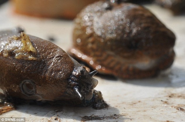 Nông dân Anh phát hiện sên khổng lồ từ mùa hè năm ngoái. Họ hy vọng cái lạnh và sương giá của mùa đông ở Anh sẽ giết chúng. Tuy nhiên, những sinh vật này đang dần thích ứng với thời tiết nơi đây. Ảnh: Metro |