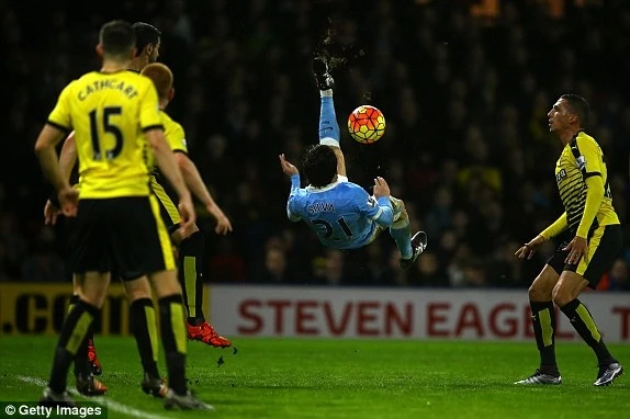| Man City nỗ lực tấn công trong hiệp 1. Tiền vệ David Silva móc bóng dứt điểm nhưng không thể mang về bàn thắng cho đội khách. |