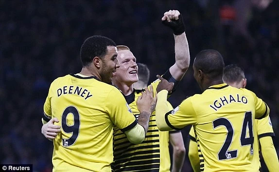 | Cầu thủ Watford gây chú ý với việc ghi bàn vào lưới đội bóng hàng đầu Man City. |