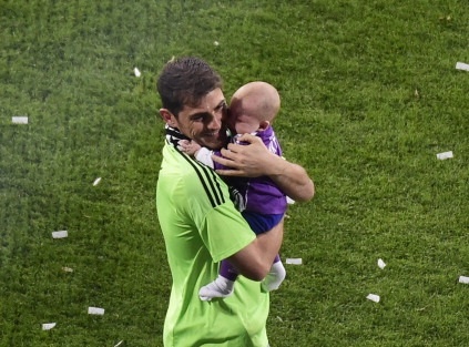 | Thủ môn Casillas cùng quý tử Martin mới cũng có mặt trong đêm hội ăn mừng danh hiệu Decima thứ 10 của Real. Đây là lần thứ 3 "Thánh" Iker được vinh danh tại giải đấu danh giá nhất cựu lục địa cấp CLB (trước đó vào các năm 2000 và 2002). |