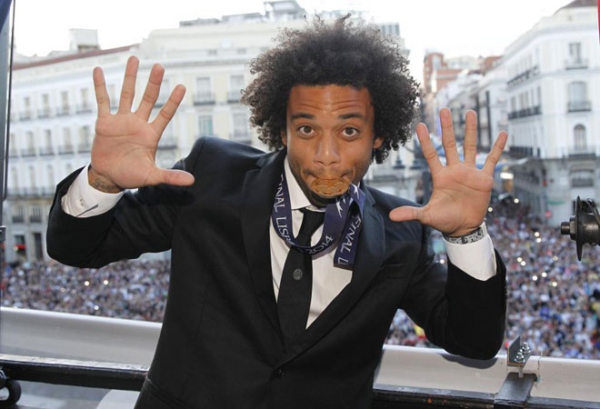 | Hậu vệ người Brazil, Marcelo cũng có kiểu ăn mừng riêng. |