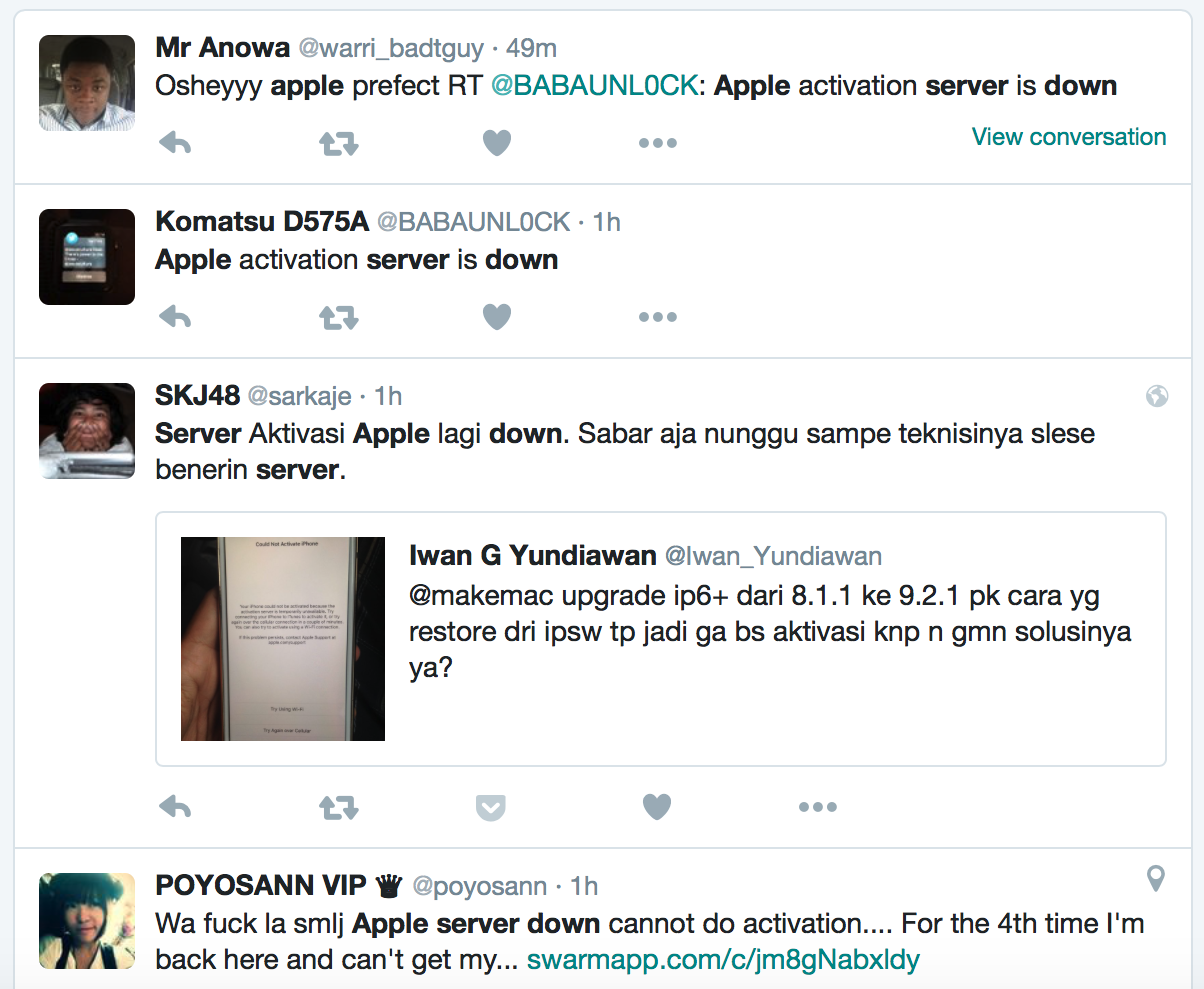 | Niều người dùng tại Đông Nam Á than phiền về tình trạng lỗi của máy chủ Apple trên Twitter. |
