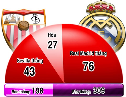 | Thành tích đối đầu sevilla - real madrid (tính trên mọi mặt trận). |