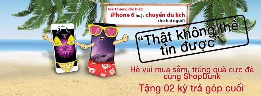 Ngoài các chương trình khuyến mãi kể trên, khi mua trả góp quý khách còn có cơ hội tham gia chương trình “Hè vui mua sắm, trúng quà cực đã” với giải thưởng là 2 chuyến du lịch dành cho 2 người trị giá 20 triệu và 6 chiếc iPhone 6 cùng ưu đãi tặng 2 tháng trả góp 3 không: 0 đồng, 0 lãi suất, 0 tiền gốc nằm trong hỗ trợ chương trình mua sắm thông minh cùng ShopDunk tối ưu hoá lợi ích tiêu dùng của bản thân.