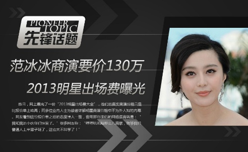 Theo đó, một trang mạng đã công bố bảng giá cát-xê sao Hoa ngữ với tên gọi "Toàn cảnh cát-xê ngôi sao 2013", với những con số khiến nhiều người giật mình và hồ nghi. Có người cho rằng, liệu có đáng tin cậy vào những số liệu được cho là cát-xê của ngôi sao, ca sĩ showbiz Hoa ngữ mà trang mạng này đưa hay không? Hàng loạt các trang giải trí trên những tờ báo mạng từ lớn đến bé của Trung Quốc đều đồng loạt đăng tải và vào cuộc.