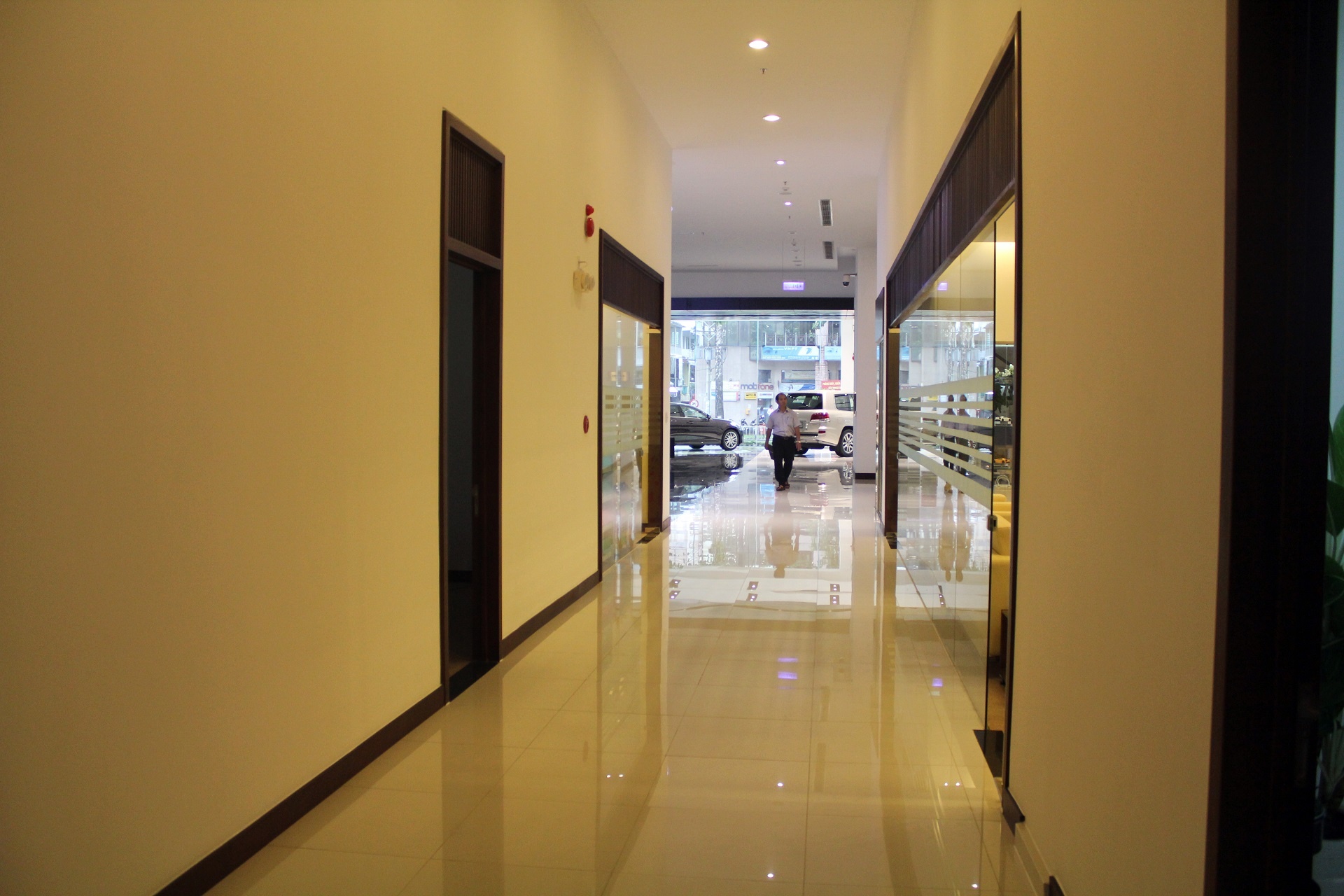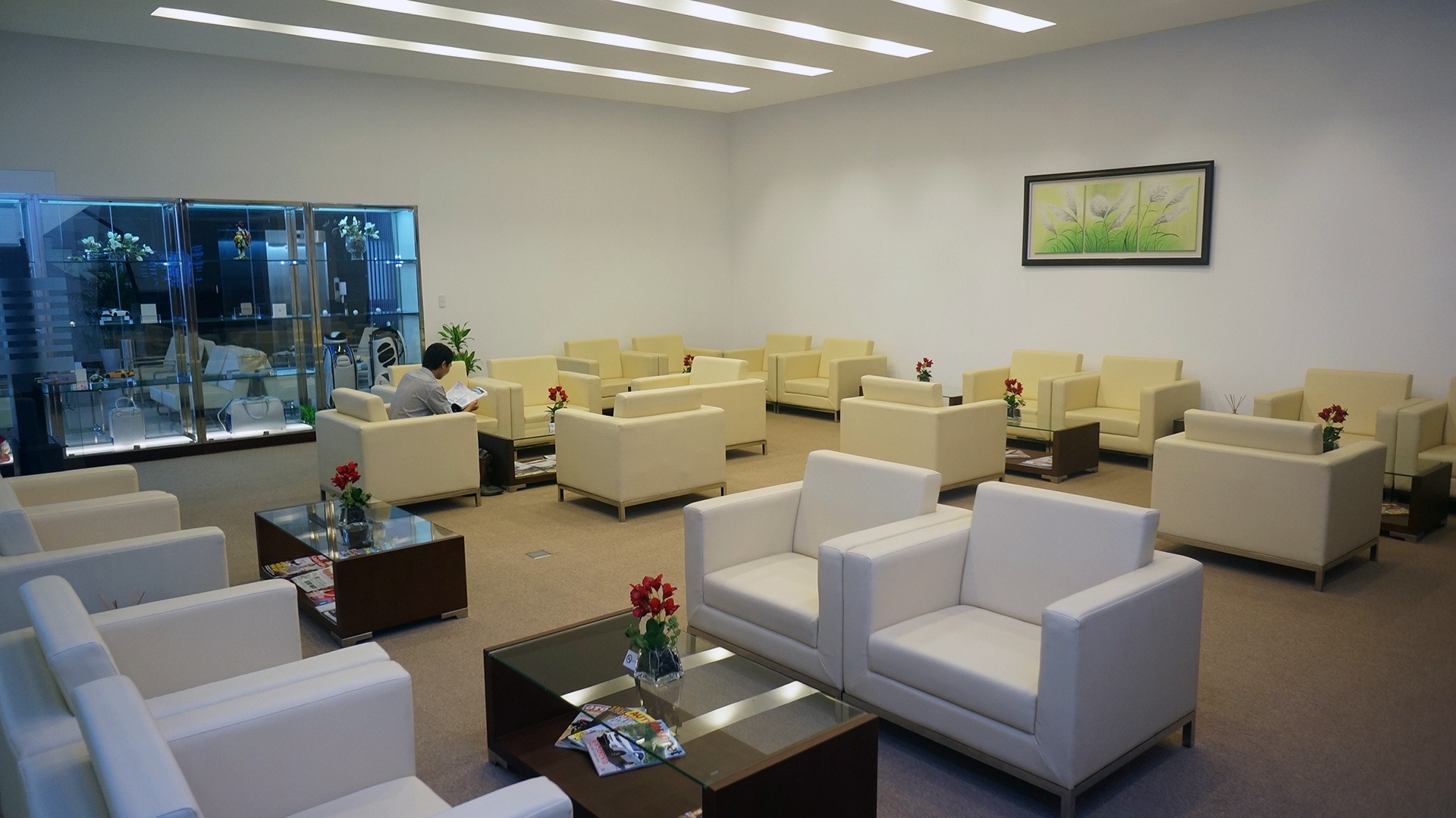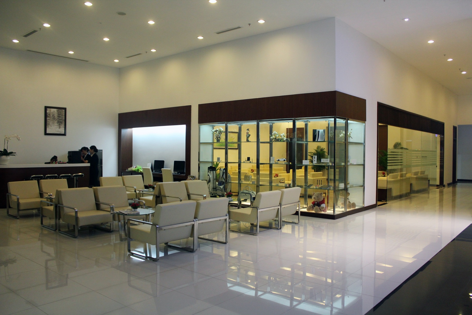 Trung tâm showroom là phòng chờ cho khách hàng. Đây là căn phòng rộng rãi, sang trọng, có TV mà hình lớn để xem phim, sách báo để xem tin tức, khách hàng được phục vụ cà phê và đồ uống miễn phí.