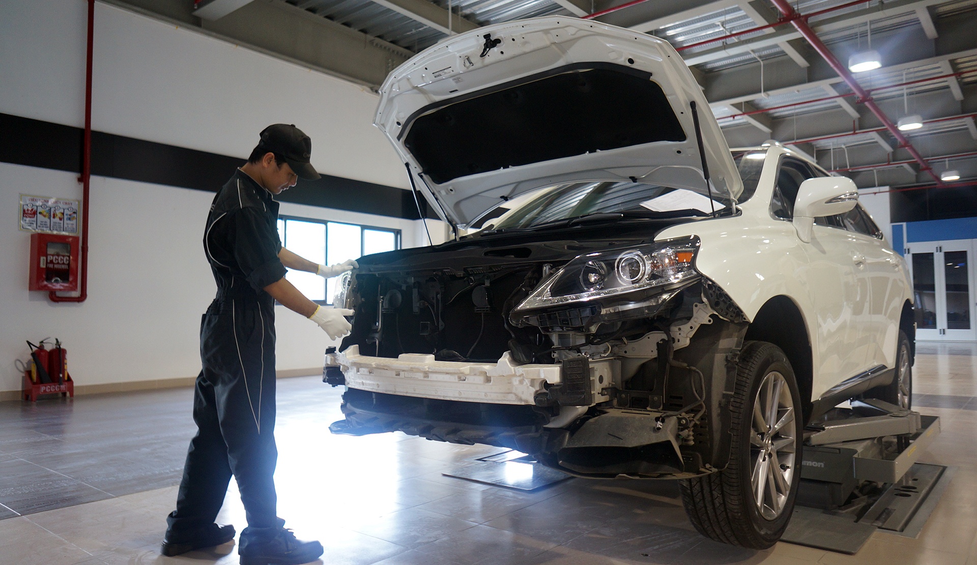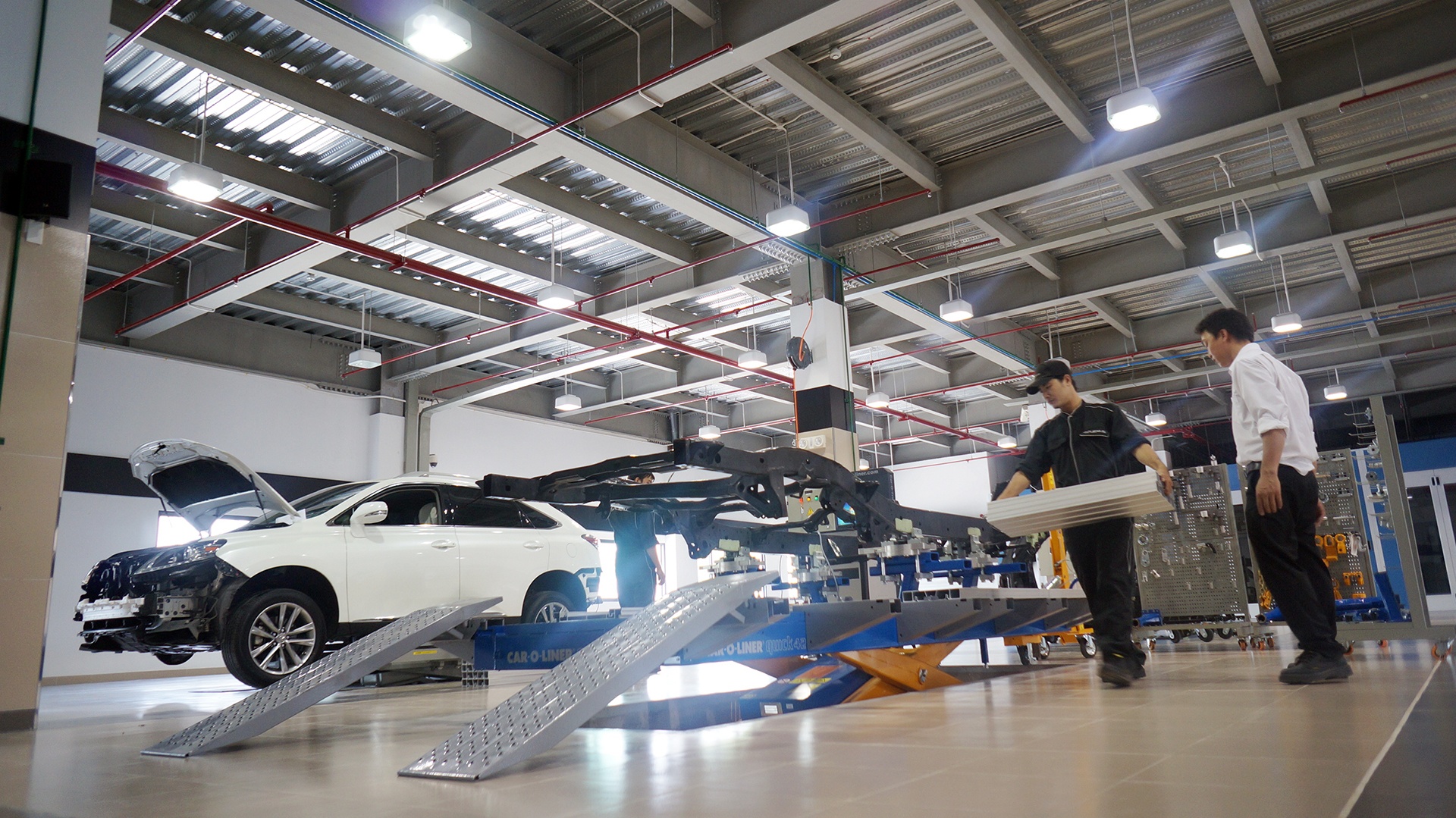 Lexus Trung tâm Sài Gòn có 6 khoang sửa chữa thân vỏ và sơn. Một bộ nắn khung của Caroliner hiện đại nhất tại Việt Nam được kết nối, điều khiển và đo đạc bằng máy tính, giúp đảm bảo độ chính xác, chất lượng và tiết kiệm thời gian sửa chữa.