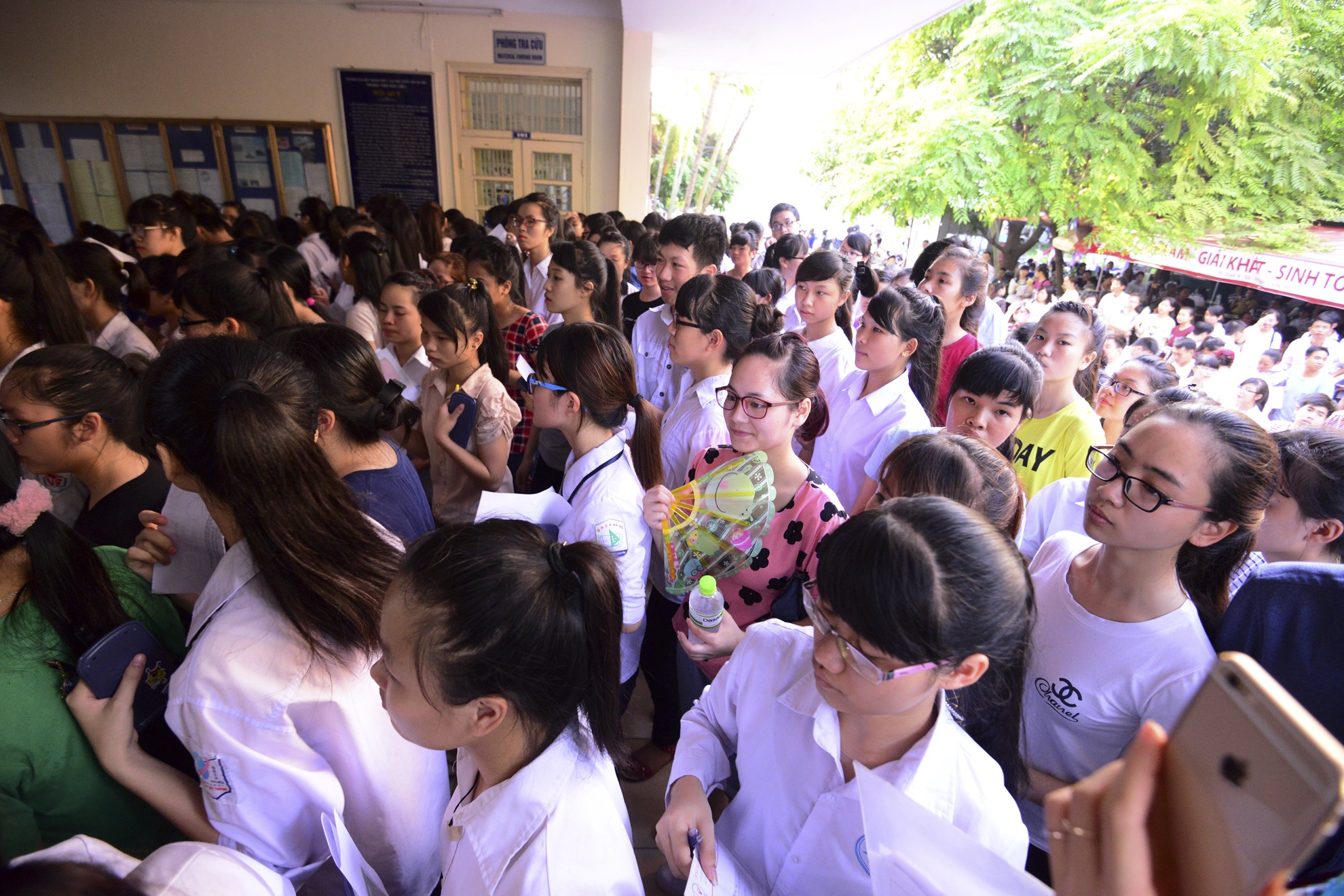 Lần đầu tham gia kỳ thi đổi mới, thí sinh nhận được sự giúp đỡ nhiệt tình của sinh viên tình nguyện, trong điều kiện thời tiết nắng nóng, có thời điểm lên tới 40 độ C.