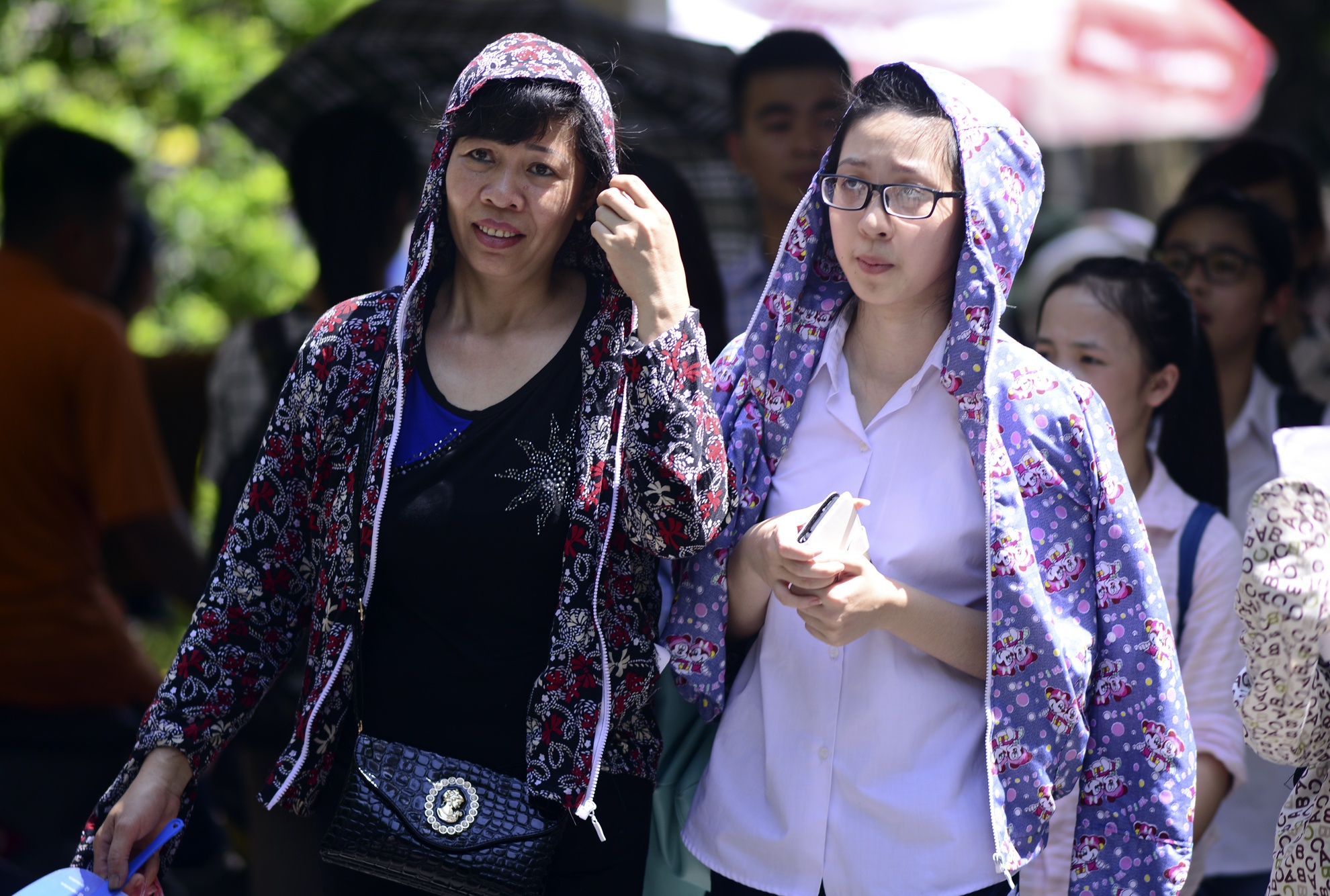 Phần lớn thí sinh được phụ huynh đưa đi thi trong nắng nóng.