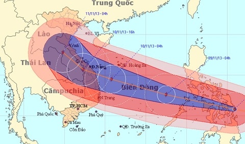 Dự báo trong 24 giờ tới, bão di chuyển nhanh theo hướng giữa Tây và Tây Tây Bắc, mỗi giờ đi được khoảng 35km. Đến 4 giờ ngày 9/11, vị trí tâm bão ở vào khoảng 12,6 độ Vĩ Bắc; 117,5 độ Kinh Đông, cách đảo Song Tử Tây (thuộc quần đảo Trường Sa) khoảng 360km về phía Đông Đông Bắc.