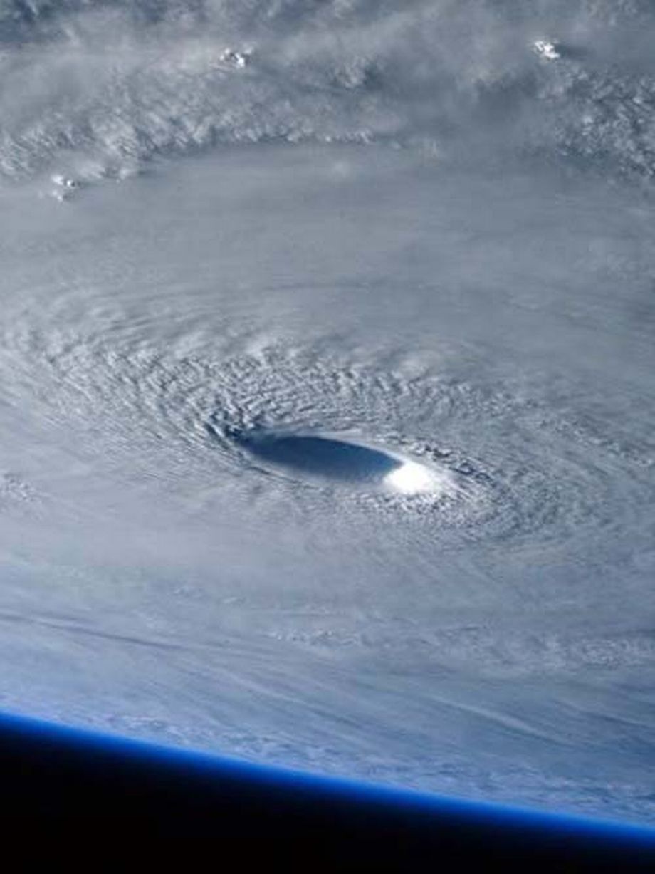 Mắt bão được nhìn từ ISS. Phi hành gia Samantha Cristoforetti người Italy đã chụp cận cảnh mắt bão khi trạm vũ trụ quốc tế bay qua khu vực nó di chuyển. Ảnh: ISS