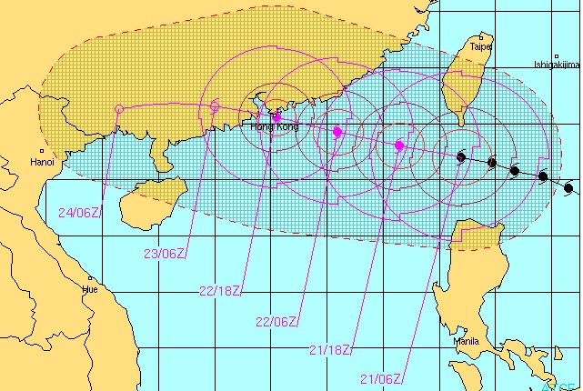 Đến 16h ngày 22/9, vị trí tâm bão cách Hong Kong khoảng 200km về phía Đông Đông Nam. Sức gió mạnh nhất vùng gần tâm bão mạnh cấp 13, cấp 14 (tức là từ 134-166 km/h), giật cấp 16, cấp 17.