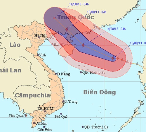 Dự báo trong 24 giờ tới, bão di chuyển theo hướng giữa Tây và Tây Tây Bắc, mỗi giờ đi được khoảng 15 - 20km và còn có khả năng mạnh thêm. Đến 4h ngày 14/8, vị trí tâm bão ở vào khoảng 20,0 độ Vĩ Bắc; 112,0 độ Kinh Đông, cách đảo Hải Nam (Trung Quốc) khoảng 110km về phía Đông. Sức gió mạnh nhất ở vùng gần tâm bão mạnh cấp 14 (tức là từ 150 đến 166 km/h), giật cấp 16, cấp 17.