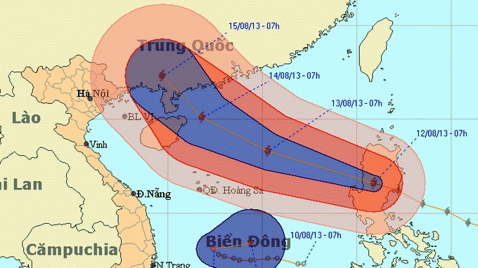 Dự báo trong 24 giờ tới, bão di chuyển theo hướng Tây Tây Bắc, mỗi giờ đi được khoảng 20 - 25km. Như vậy ngày hôm nay bão sẽ vượt đảo Luzon (Philippines) và đi vào vùng biển phía Đông khu vực Bắc Biển Đông. Đến 7h ngày 13/8, vị trí tâm bão cách quần đảo Hoàng Sa khoảng 370km về phía Đông Bắc. Sức gió mạnh nhất ở vùng gần tâm bão mạnh cấp 14 (tức là từ 150 - 166km/giờ), giật cấp 16, cấp 17.