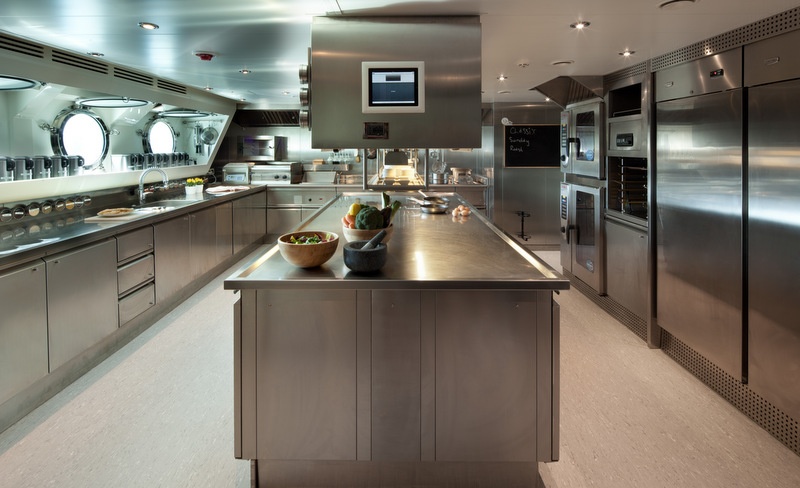 | Du thuyền được thiết kế ngoài các khu vực vui chơi giải trí quầy bar còn có phòng massage, xông hơi, bếp ăn với đầu bếp riêng, phòng ăn, phòng làm việc. |