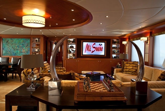 | Phòng khách của du thuyền Mi Sueno với màn hình TV cỡ lớn. |