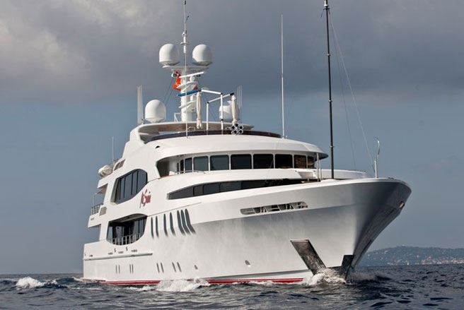| Siêu du thuyền Mi Sueno có chiều dài 58 m, bơi đến dự triển lãm từ cảng Nice của nước Pháp. |