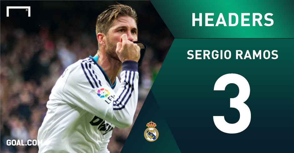 | Sergio Ramos là cầu thủ ghi bàn bằng đầu nhiều nhất ở El Clasico với 3 lần, hơn 1 lần so với Patrick Kluivert và Carles Puyol (cùng của Barcelona). Đồ họa: Goal. |